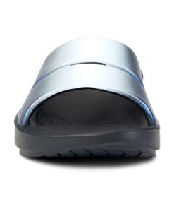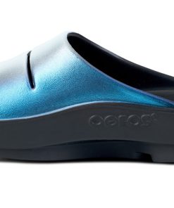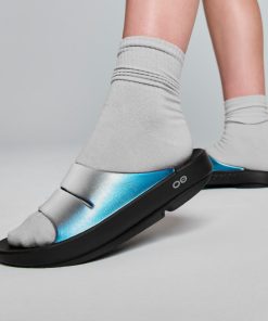 Luxe: Vibrant treatments and prints bring some extra fun and expression to OOFOS’ classic slide silhouette.