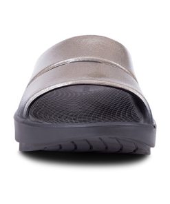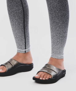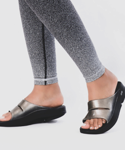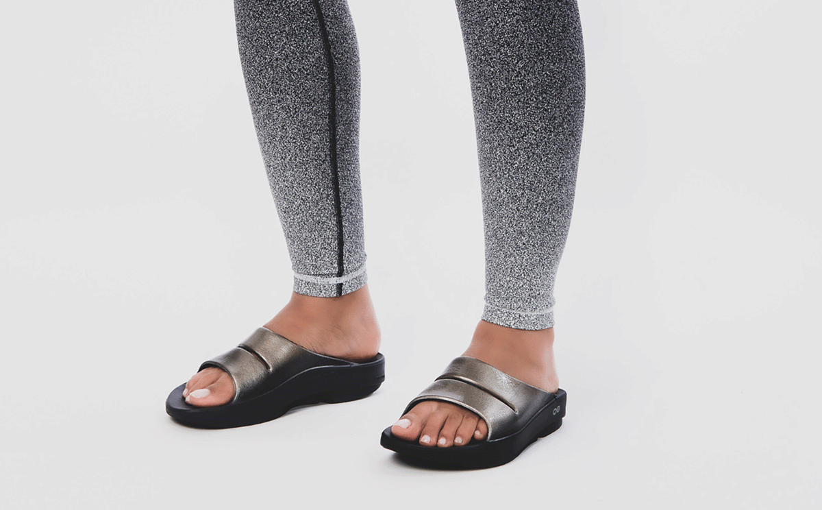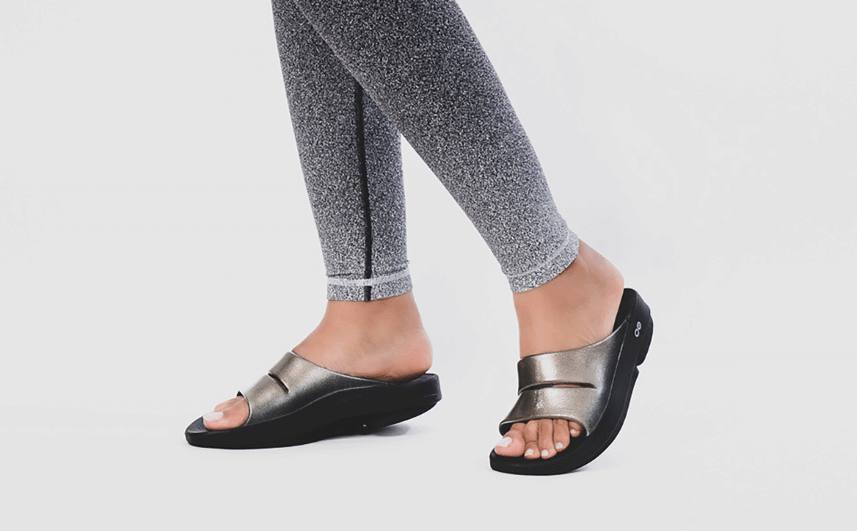 Luxe: Vibrant treatments and prints bring some extra fun and expression to OOFOS’ classic slide silhouette.