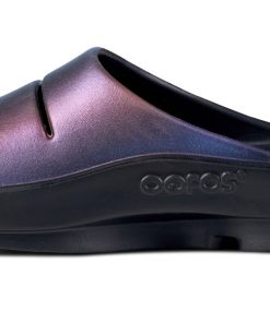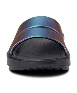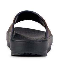 Luxe: Vibrant treatments and prints bring some extra fun and expression to OOFOS’ classic slide silhouette.