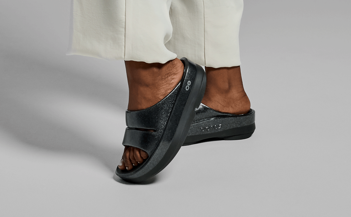 The OOmega OOahh is a versatile, modern take on the traditional OOahh Active Recovery Slide. Featuring our proven OOfoam™ technology and unique footbed design – the addition of the MEGA midsole provides an extra 15mm of impact-absorbing OOfoam™. The OOmega is a step forward in fashion and another step into Active Recovery. OOmega, a women’s platform sandal for trend-setting recovery, day or night. Unique in footwear and only from OOFOS.